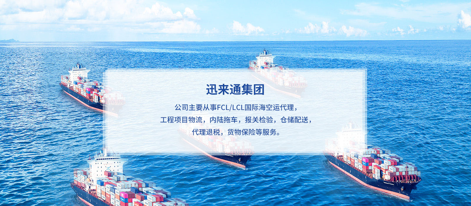 “海運(yùn)”是迅來(lái)通的主營(yíng)業(yè)務(wù)之一。 公司多年來(lái)一直致力于海運(yùn)集裝箱進(jìn)出口業(yè)務(wù),與多家船公司建立了良好的戰(zhàn)略合作伙伴關(guān)系,并與世界各大港口代理及國(guó)內(nèi)主要城市代理建立了互助合作伙伴關(guān)系。 經(jīng)過(guò)多年的發(fā)展,公..